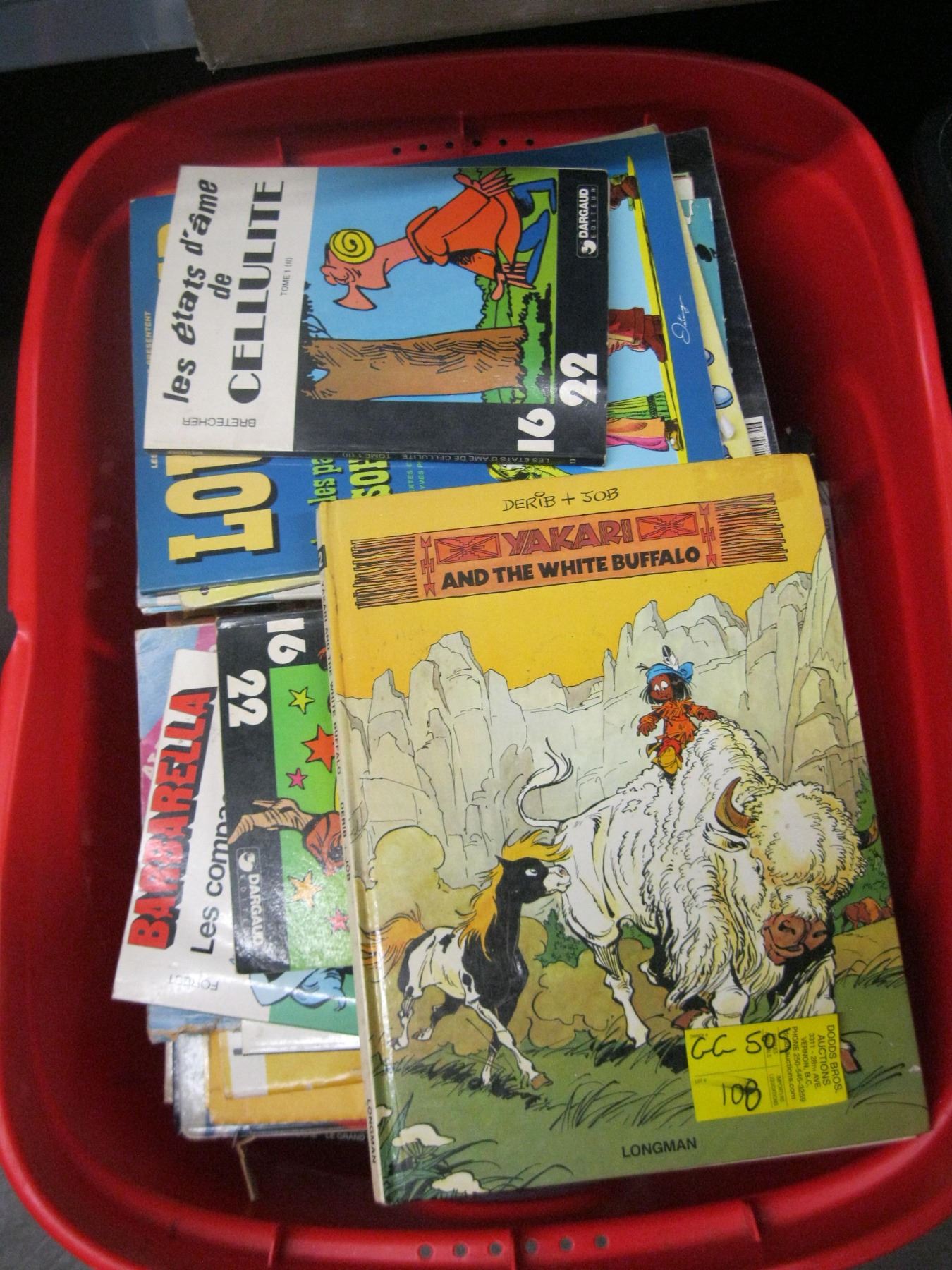 TOTE W/MISC. BOOKS, FRENCH & SOME ENGLISH