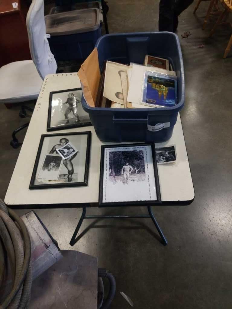 TOTE WITH ANTIQUE WRESTLING PICTURES, POSTCARDS, AND OLD PHOTO ALBUMS
