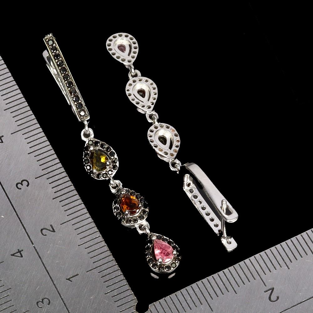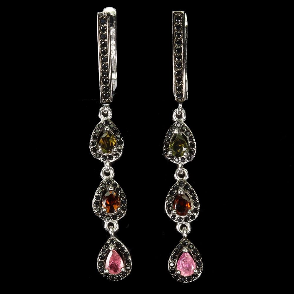 TOURMALINE AND BLACK SPINEL EARRINGS IN 14K WHITE PLATED GOLD OVER 925 STERLING SILVER - APPRAISED REPLACEMENT VALUE