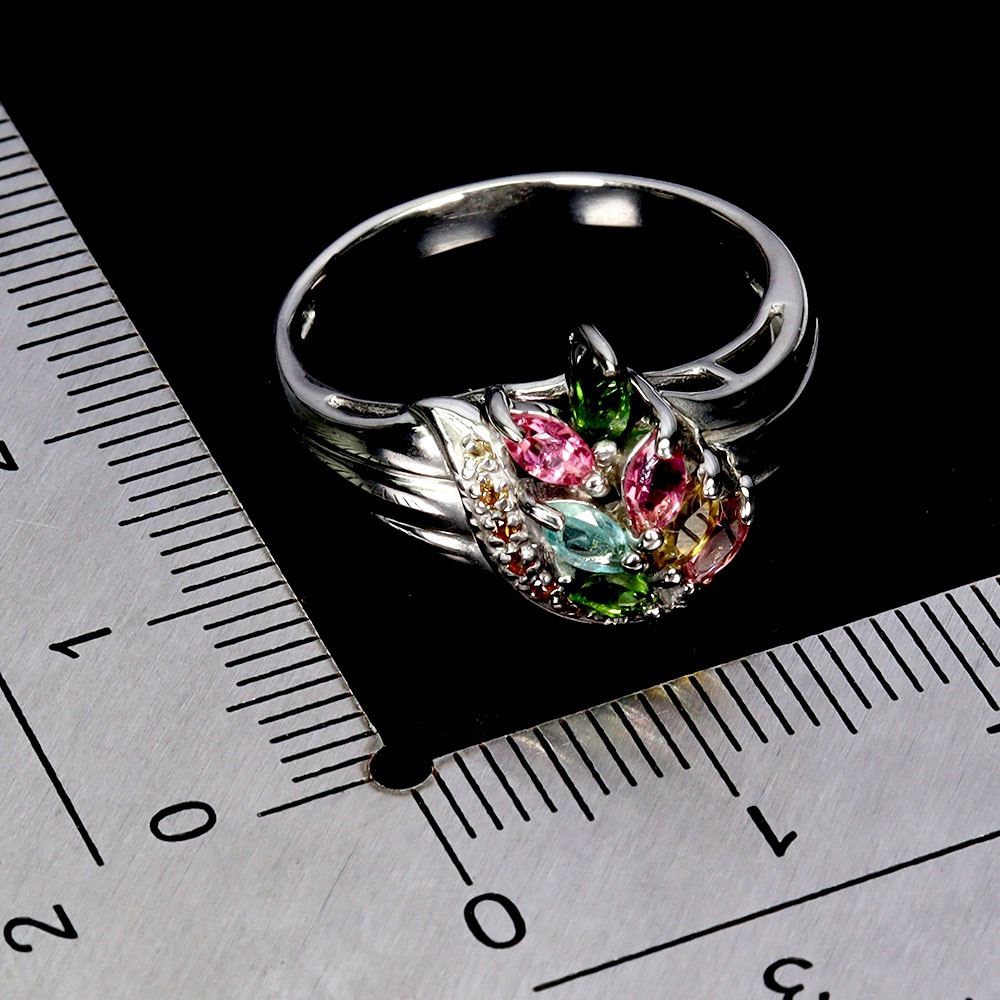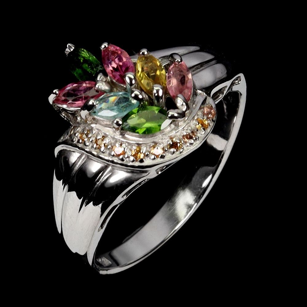 TOURMALINE AND SAPPHIRE RING IN 14K WHITE PLATED GOLD OVER 925 STERLING SILVER - SIZE 7 -APPRAISED REPLACEMENT VALUE