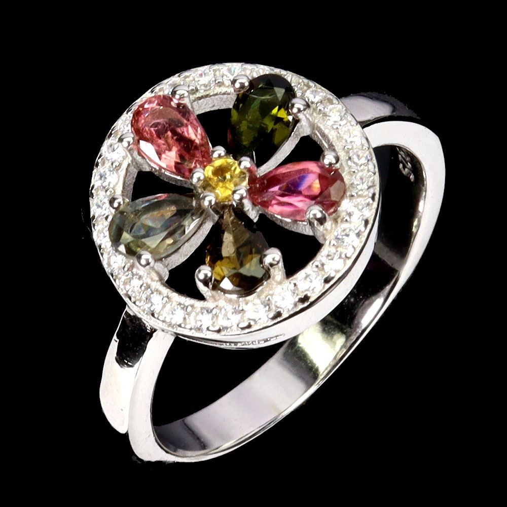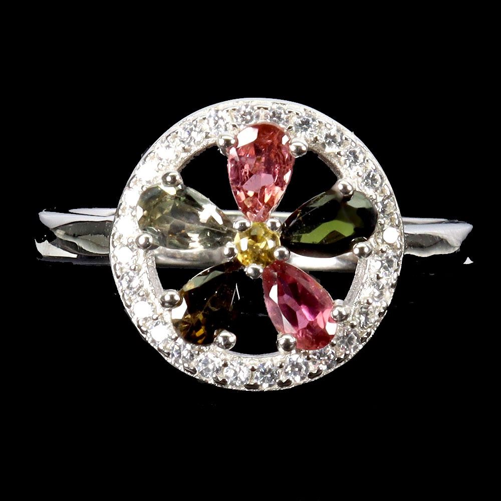 TOURMALINE RING IN 14K WHITE PLATED GOLD OVER 925 STERLING SILVER - SIZE 8 -APPRAISED REPLACEMENT VALUE