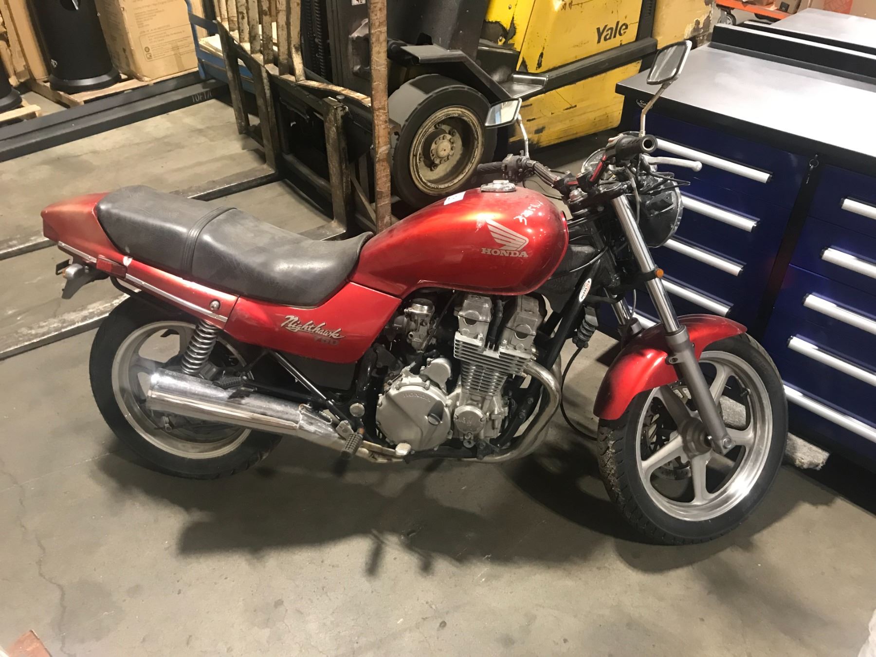 *TOW* 1991 HONDA NIGHTHAWK MOTORCYCLE, RED, VIN# JH2RC3829MM000185 KMS 90,068, GAS ICBC DECS $3,543.26 *MUST TOW, NO KEYS, NOT SUITABLE FOR TRANSPORTATION*