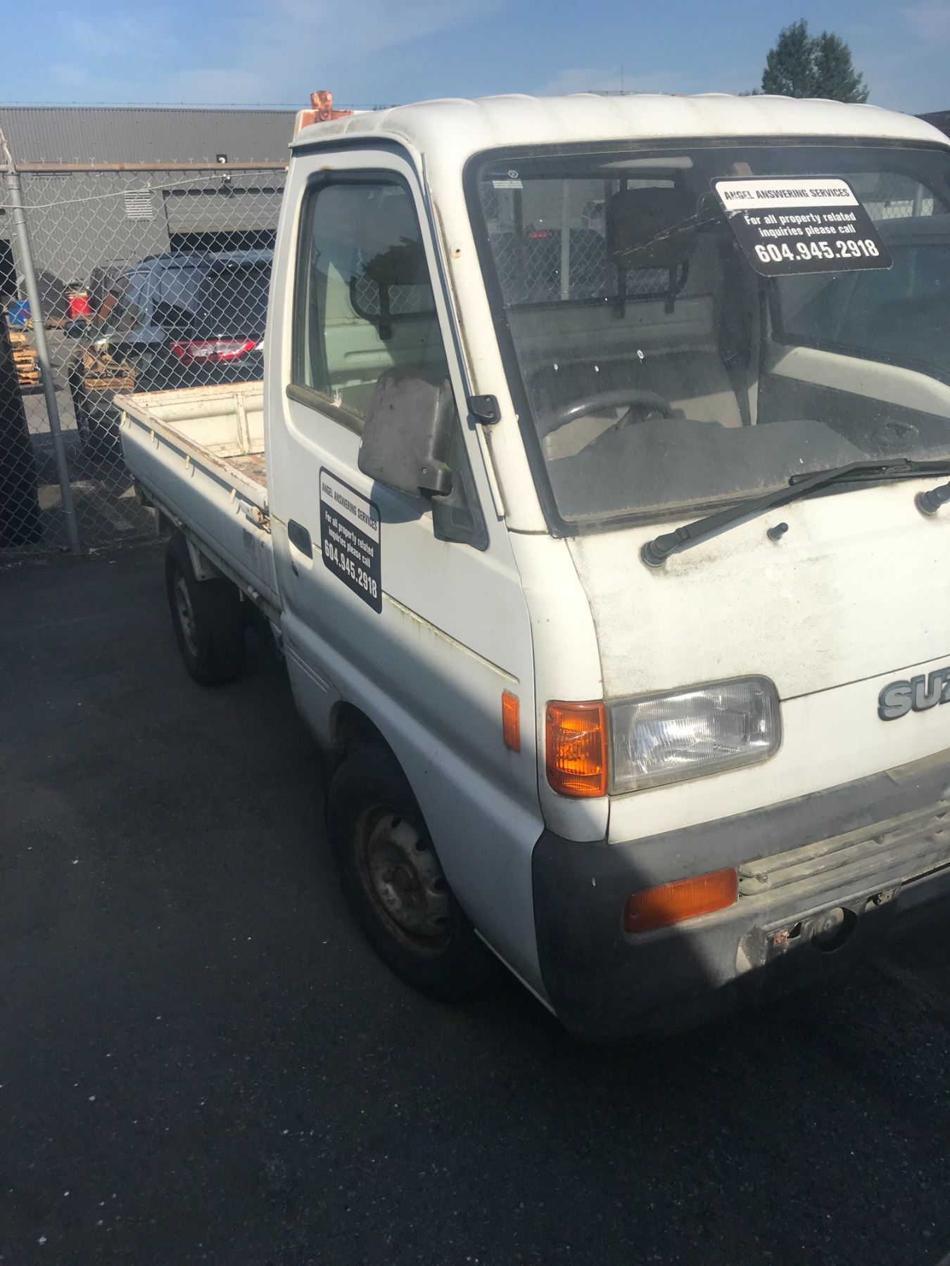 *TOW* 1998 SUZUKI S CARRY, 2 DR PU, WHITE, VIN DC51T548785 KMS 159,630, GAS, MANUEL RD, RIGHT HAND DRIVE, DRIVERS SIDE LOCK LATCH BROKEN OOC HAS BC REGISTRATION, NO ICBC DECLARATIONS *MUST TOW, NO KEY, NOT SUITABLE FOR TRANSPORTATION*