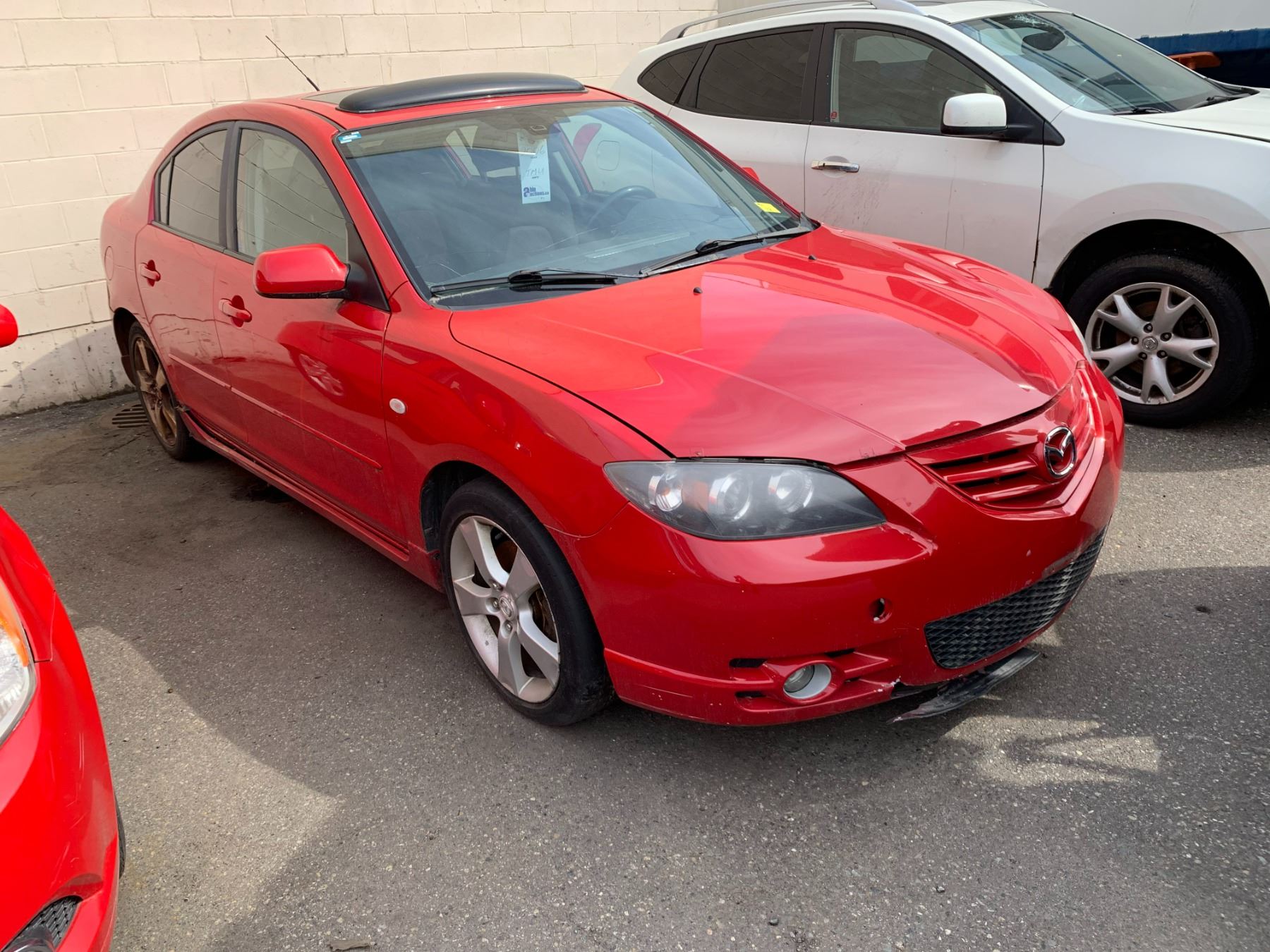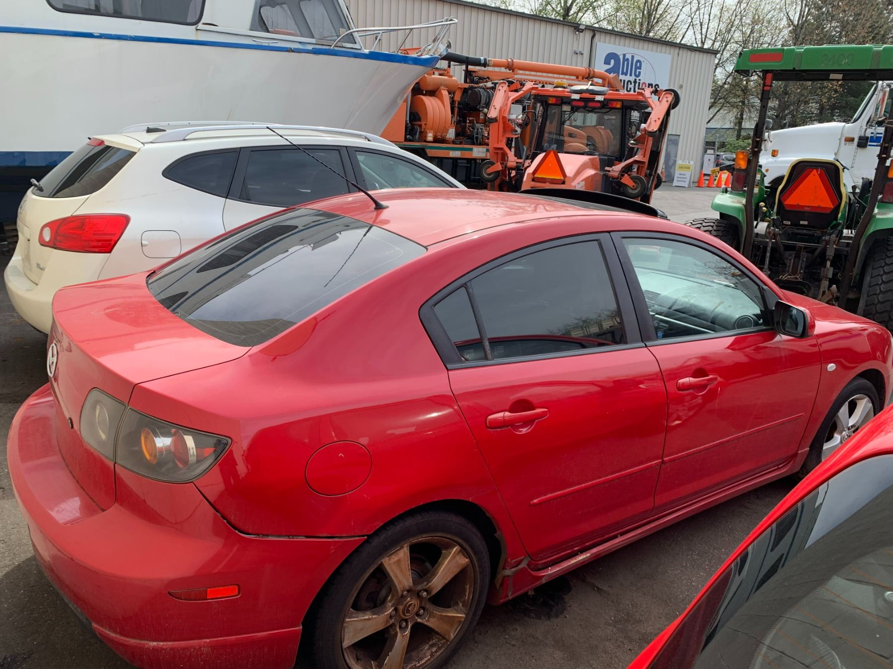 *TOW* 2006 MAZDA 3, 4 DR SEDAN, RED, VIN JM1BK123061513929 KMS TMU, GAS, AUTO, 23L/16V RD, CD, PW, CC, PL, TW, AC, SR CRACKED WINDSHIELD, PLASTIC FRAME COVER PARTLY OFF BOTH SIDES, REAR BUMPER DISCONNECTED BOTH SIDES, FRONT BUMPER CRACKED, SCRATCHED AND HAS PAINT CHIPS, CIGARETTE ODOUR, MOLDY, NO KEYS, NEEDS CLEANING, *MUST TOW, NO KEYS, NOT SUITABLE FOR TRANSPORTATION* OOP *HAS BC REGISTRATION* ICBC DECLARATIONS - 1 X NO DETAILS, 2 X REPAIRS TTL $7,699.27 1 OPEN RECALL #4921G, 04-07 MAZDA3 - STEERING WHEEL LOGO MAY SHATTER RECALL DATE 2021 JUL 07