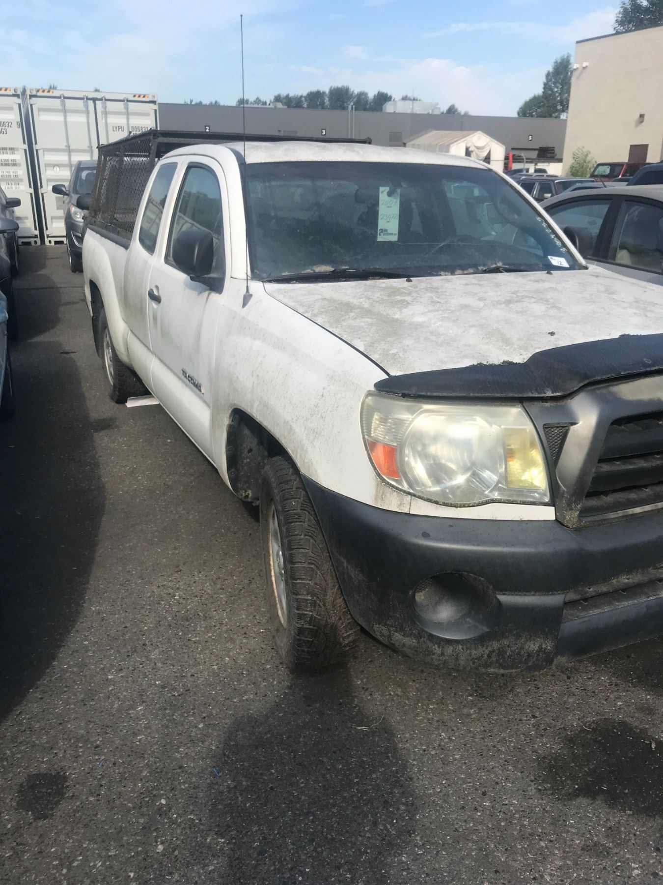 *TOW* 2007 TOYOTA TACOMA, 2 DR PU, WHITE, VIN# 5TETX22N17Z374110 KMS 234,721, GAS, AUTO, 2.7L RD, CD, TW, AC CLARION WITH REMOTE, CAGE ON BACK, CRACKED WINDSHIELD STARTS, NEEDS NEW BATTERY ICBC 1X NO DETAILS *MUST TOW, NOT SUITABLE FOR TRANSPORTATION*