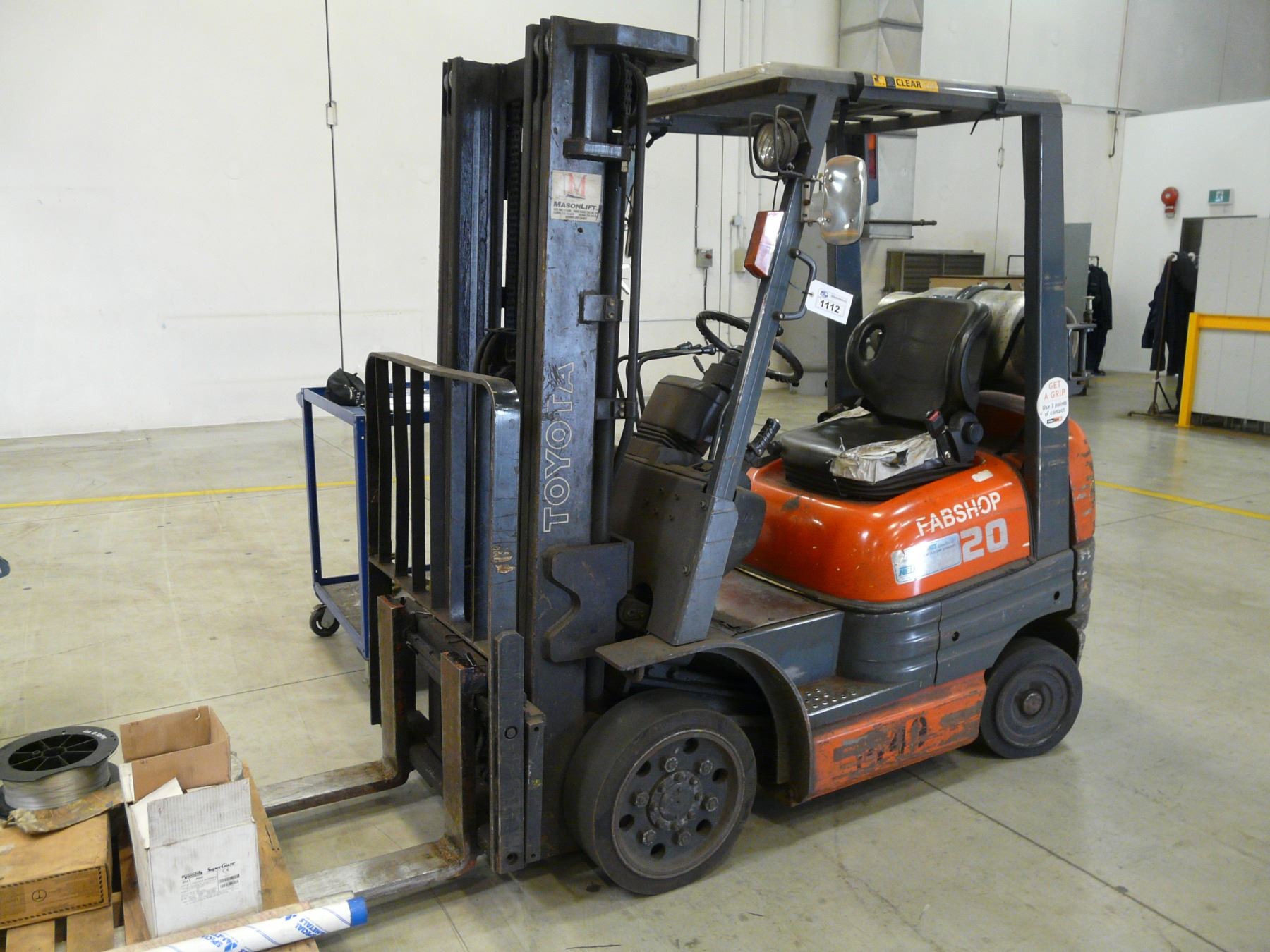 TOYOTA MODEL 426FGCU20 PROPANE FORKLIFT, 21,616 HOURS, 4,050 LB CAPACITY, HARD TIRES, 189" 3 STAGE MAST, SIDE SHIFT, S/N 76131