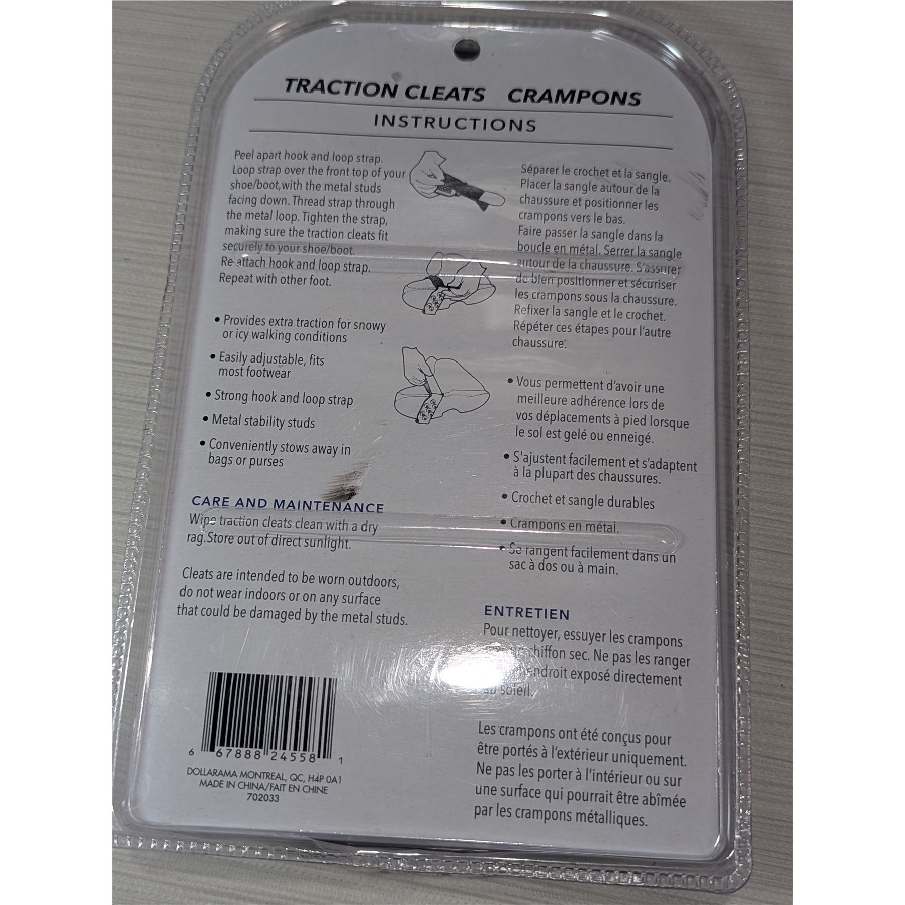 TRACTION CLEATS for snow and ice.