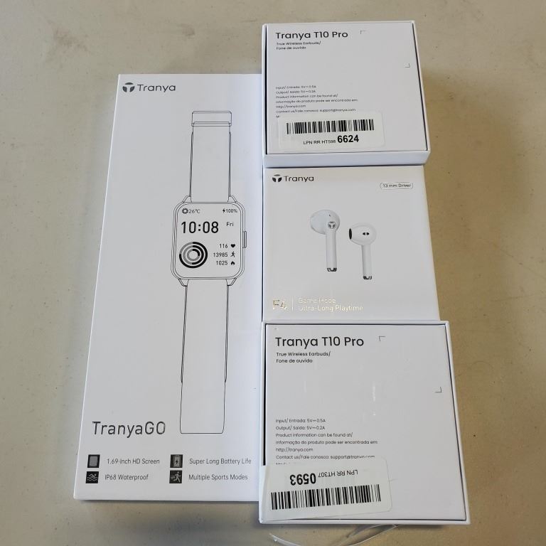 TRANYA GO SMARTWATCH, AND 3 PAIRS OF WIRELESS HEADPHONES, F4 AND 2 T10PRO