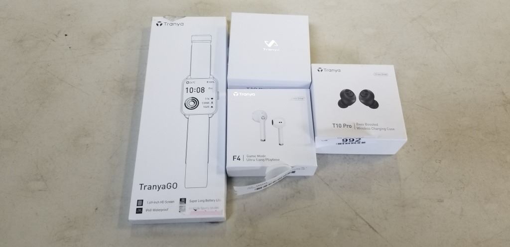 TRANYA GO SMARTWATCH, AND 3 PAIRS OF WIRELESS HEADPHONES, F4 AND 2 T10PRO