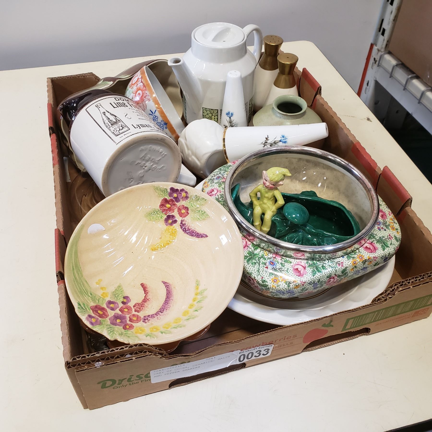 TRAY OF CHINA, CERAMICS, SALT AND PEPPER SHAKERS