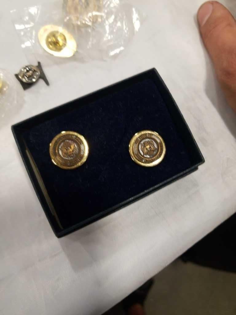 TRAY OF COLLECTIBLE CANADA AND RCMP PINS, AND PRESIDENT OF THE UNITED STATES AIR FORCE ONE CUFFLINKS