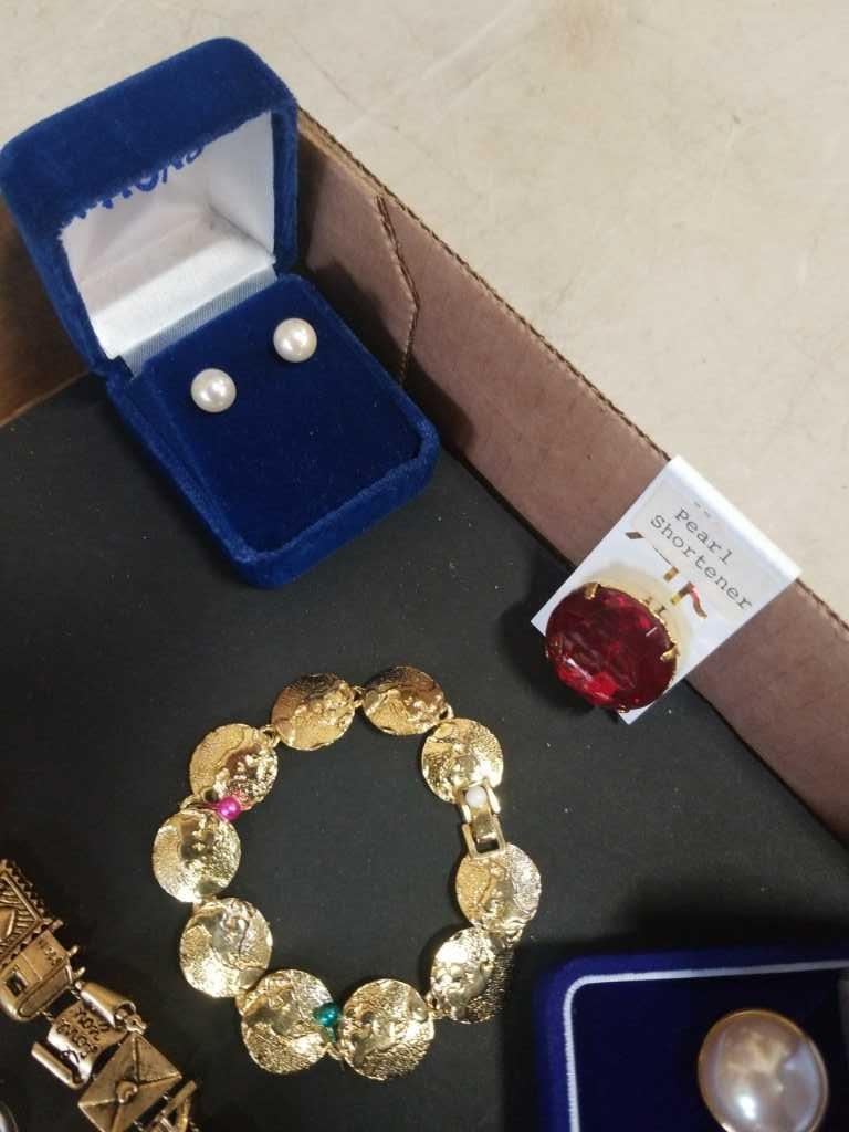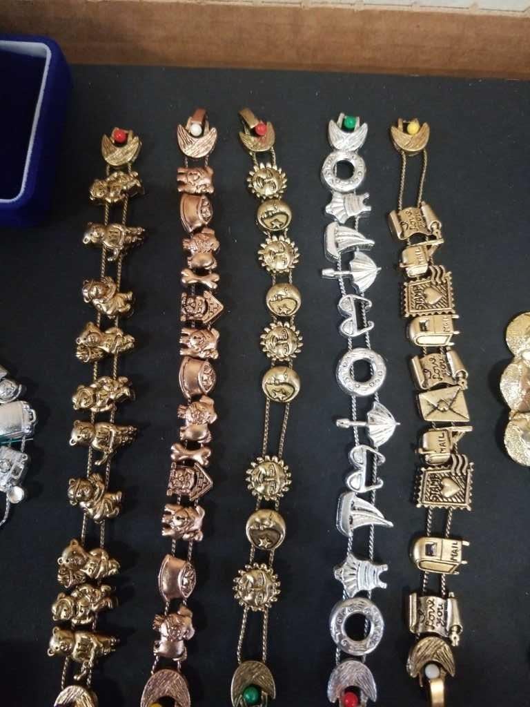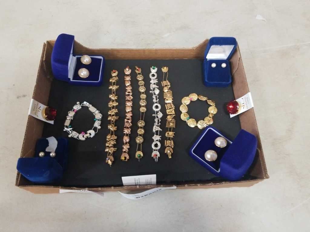 TRAY OF EARRINGS AND SLIDING CHARM BRACELETS