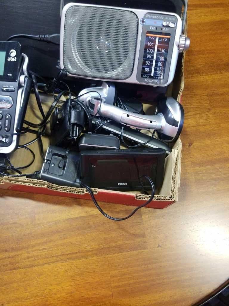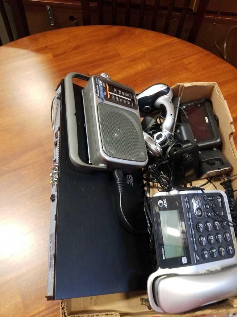 TRAY OF ELECTRONICS, DVD PLAYER, RADIO, PHONES