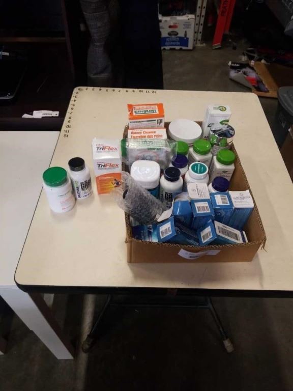 TRAY OF EYE DROPS AND SUPPLEMENTS