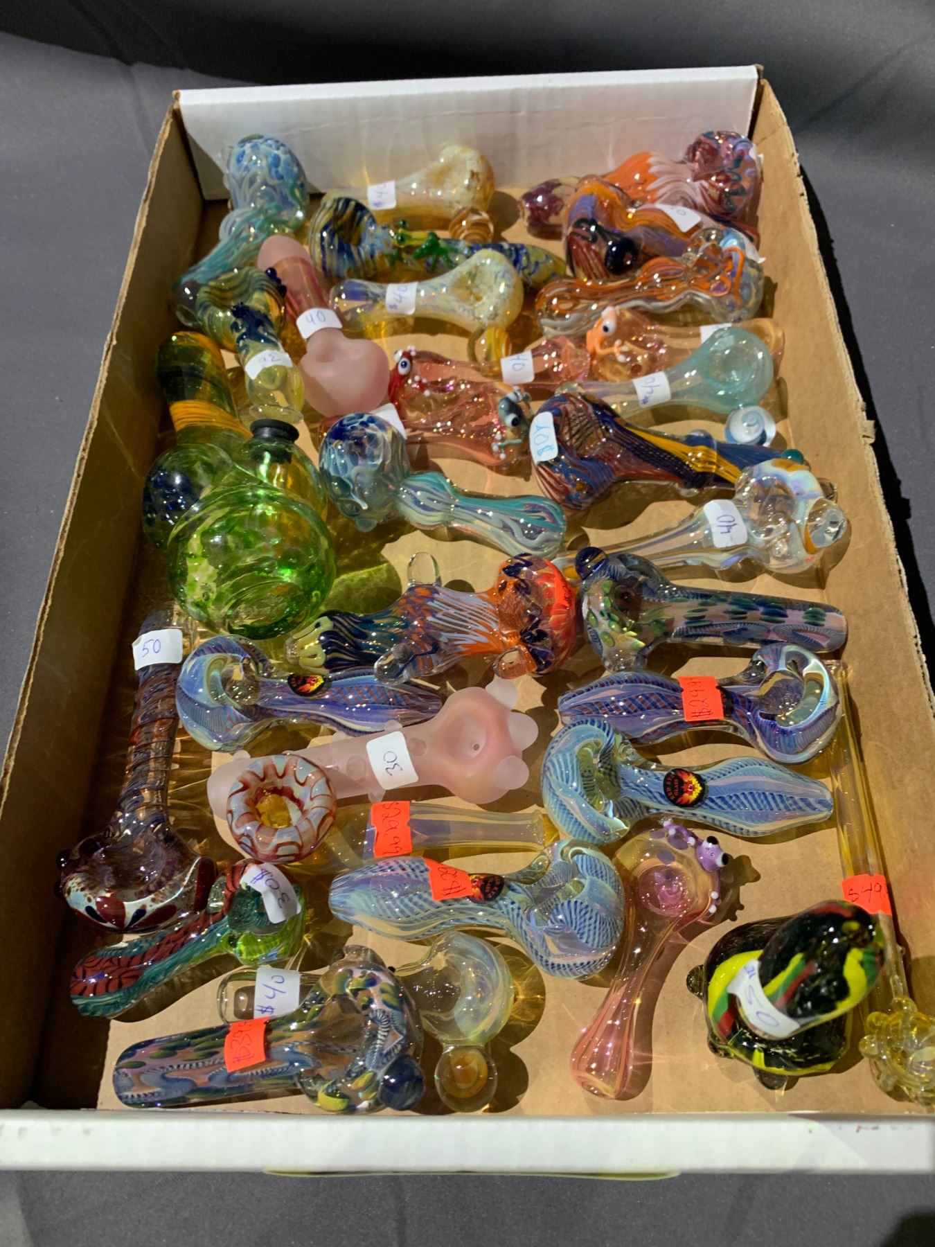 TRAY OF GLASS PIPES