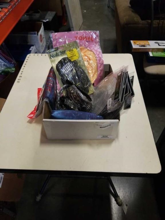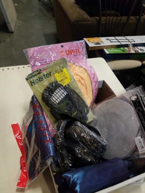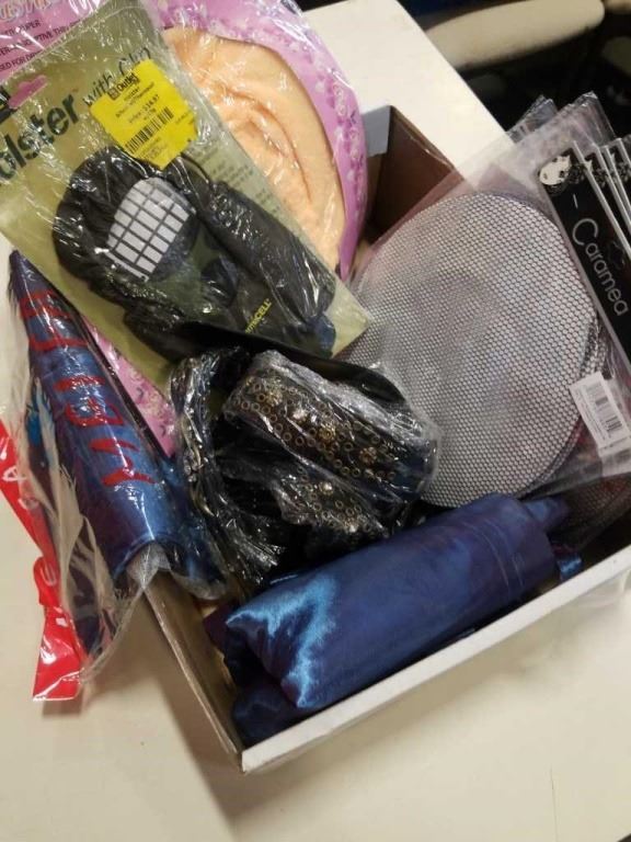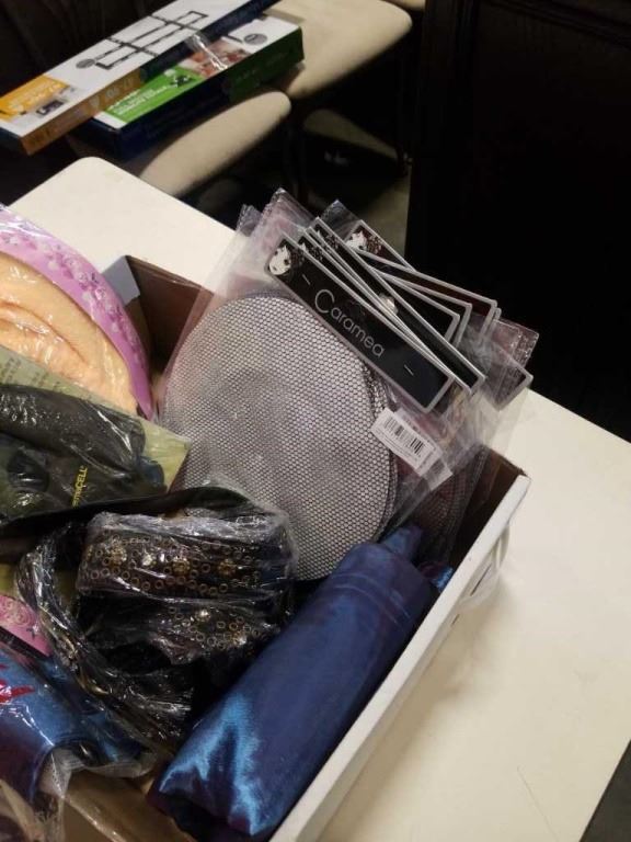 TRAY OF HAIR NETS, BELTS, HAIR APRONS