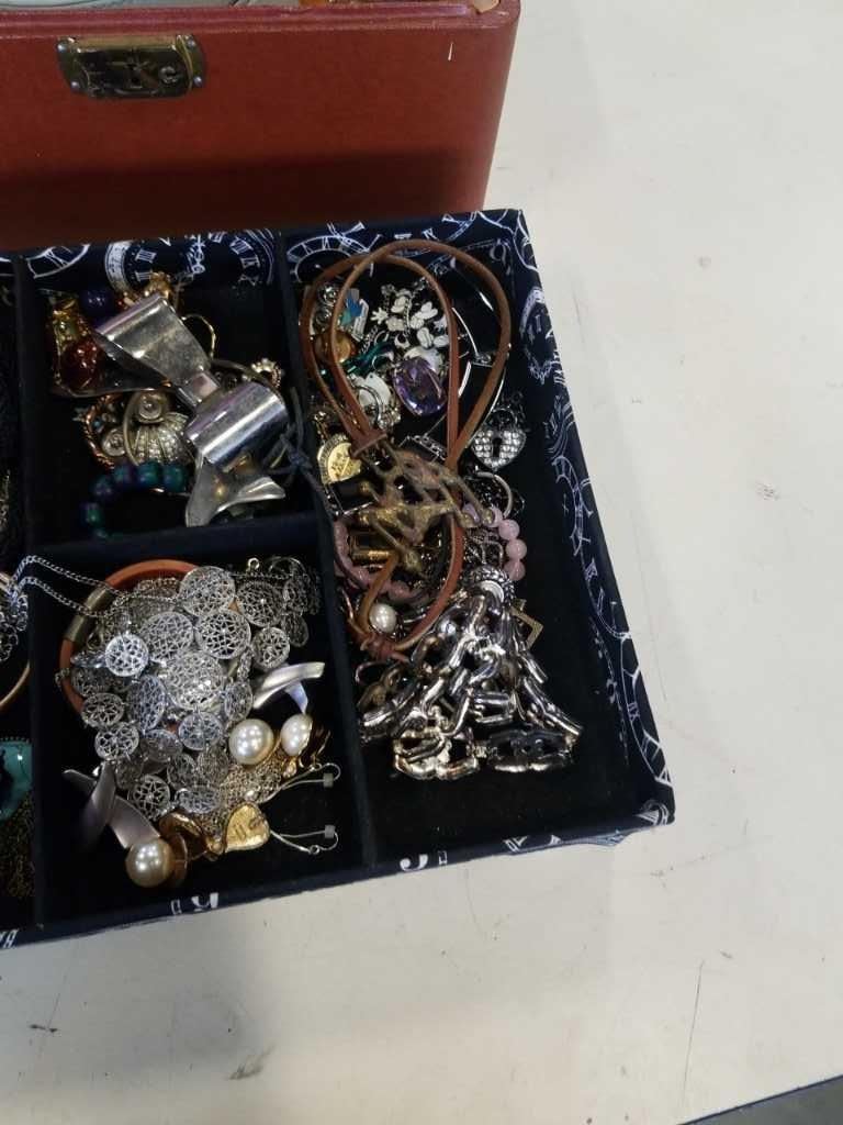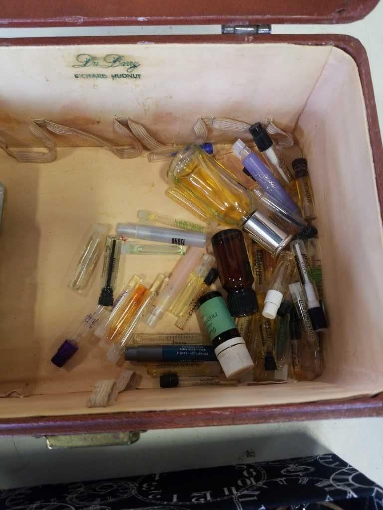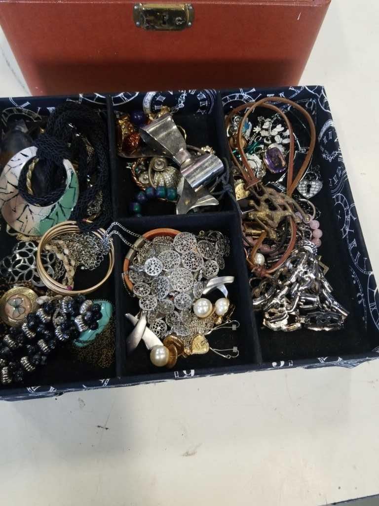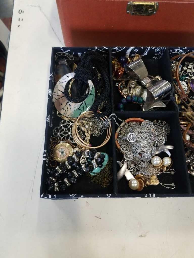 TRAY OF JEWELRY AND MAKEUP CASE WITH PERFUME