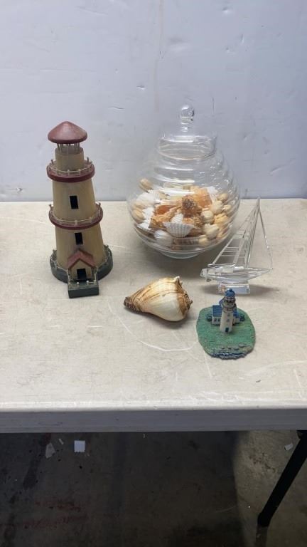 TRAY OF MARINE DECOR AND JAR OF SEASHELLS