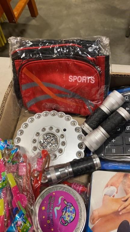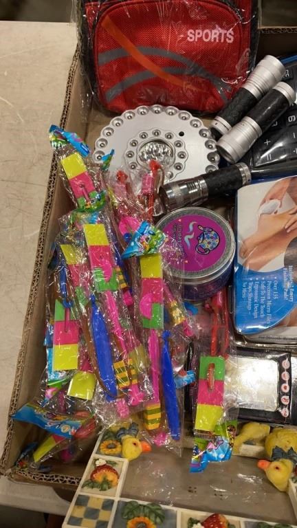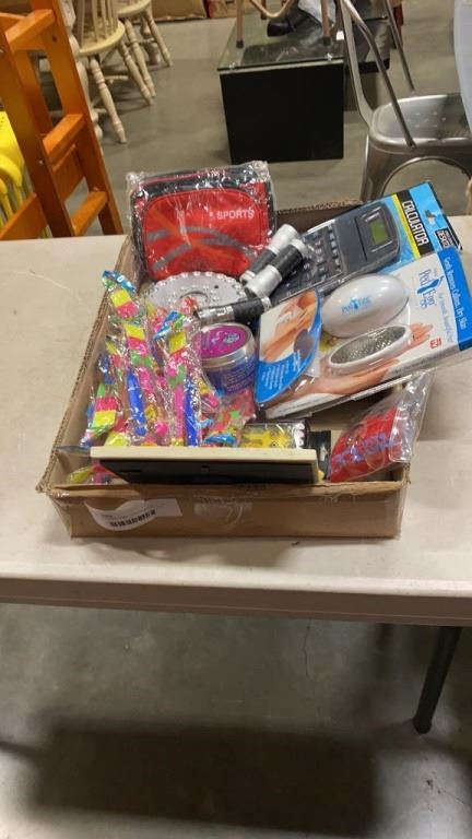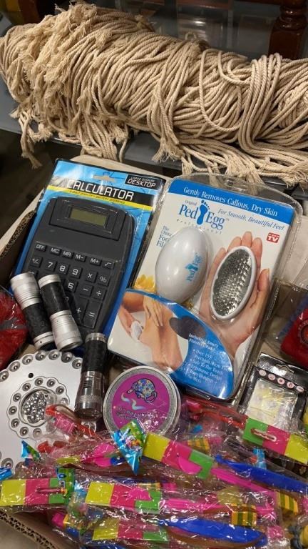 TRAY OF NEW ITEMS - CALCULATOR, PEDI EGG, FLASHLIGHTS, ETC