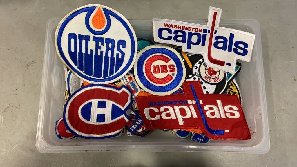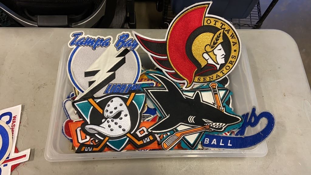 TRAY OF VINTAGE NHL LARGE PATCHES