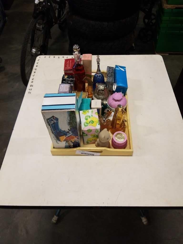 TRAY OF VINTAGE PERFUME BOTTLES AND MORE