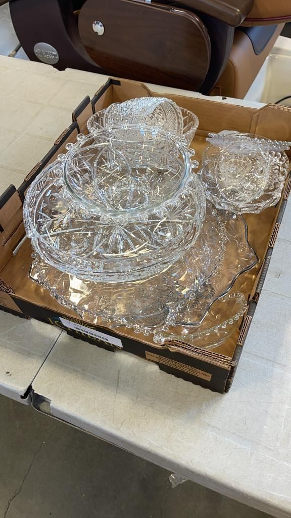 TRAY OF VINTAGE PINWHEEL CRYSTAL, SILVER OVERLAY AND MORE