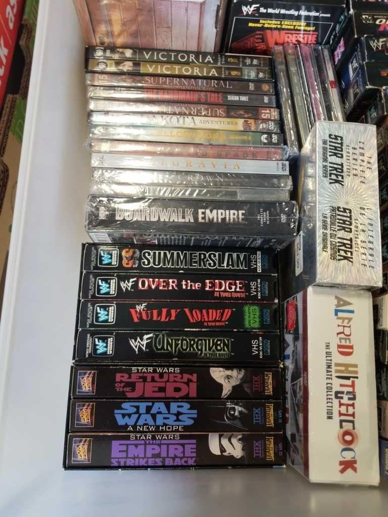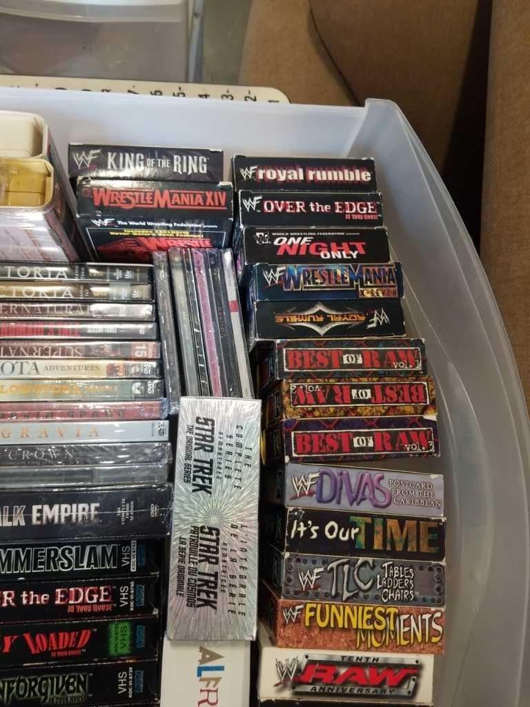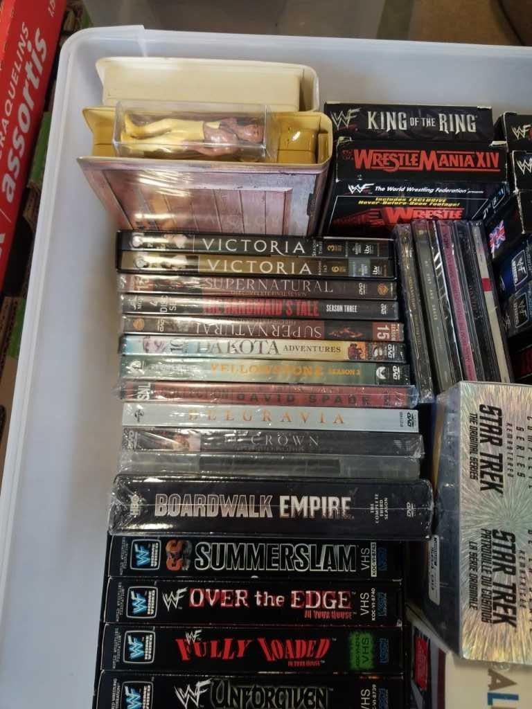 TRAY OF WWF MOVIES, STAR TREK COMPLETE SERIES SET, DVDS