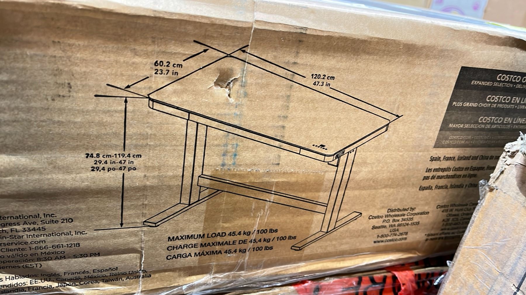 TRESANTI ADJUSTABLE HEIGHT DESK WITH INTEGRATED TOUCH CONTROLS, 1 USB PORT & 2 USB-C PORTS - 47.3"W X 23.7"D X 29.4" - 47"H * IN BOX *