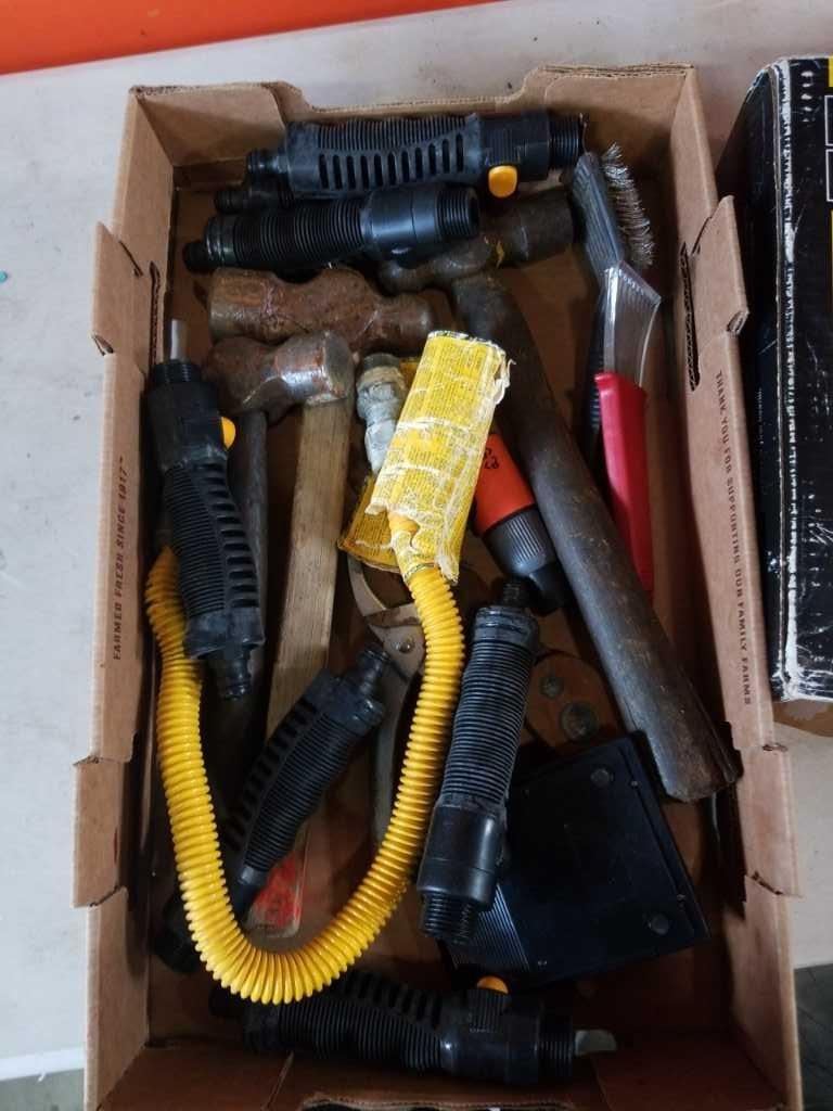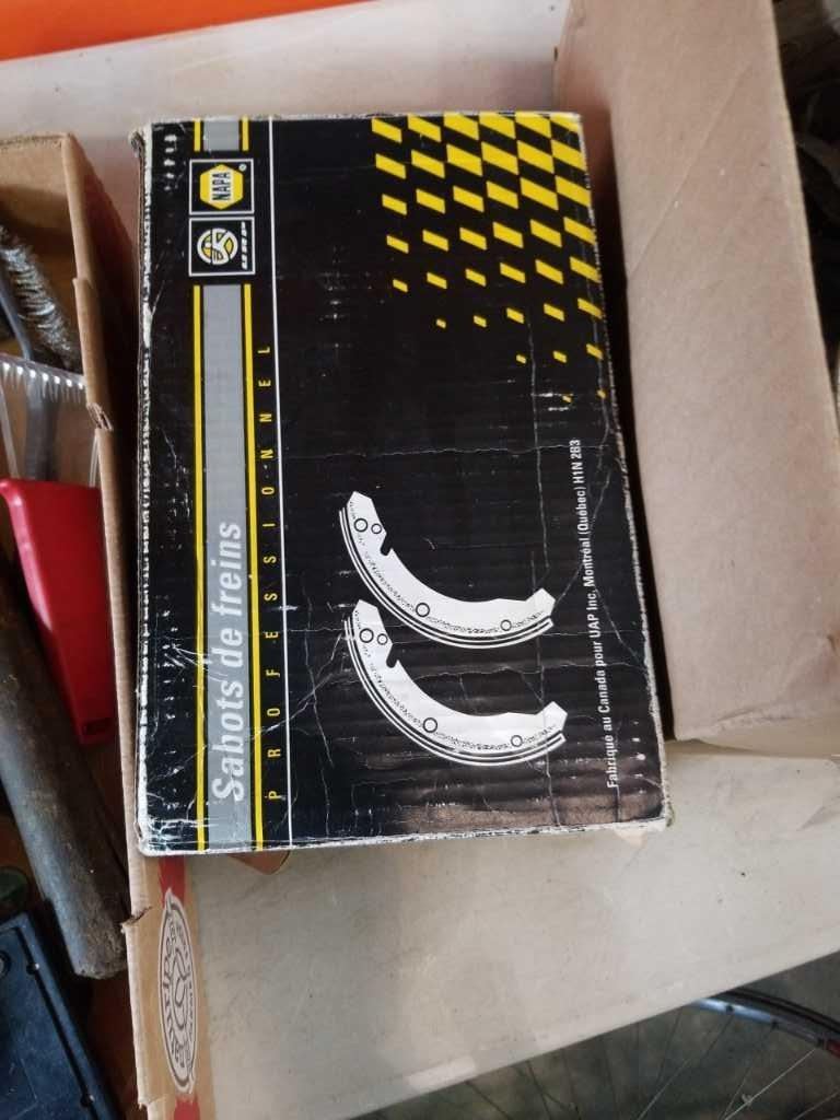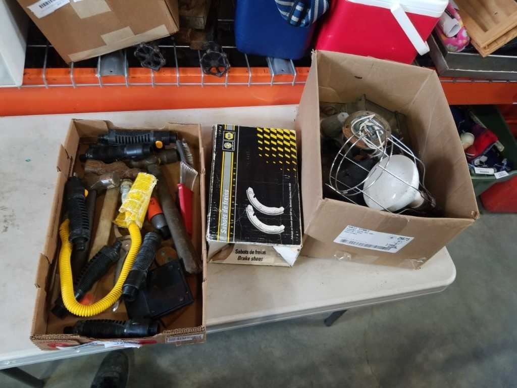 TRQAY OF TOOLS, BOX OF LIGHTS, BRAKE PADS
