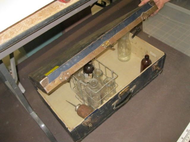 TRUNK W/ASSORTED MILK BOTTLES, ETC.