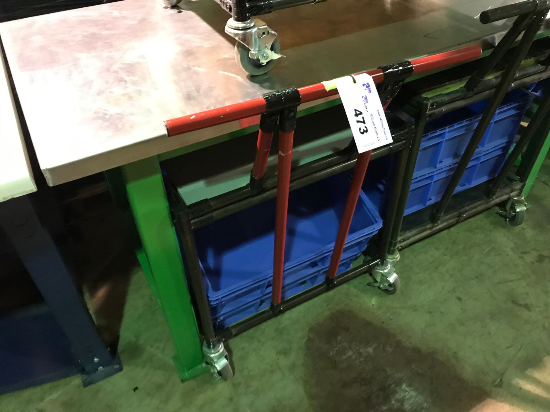 TUBE CONSTRUCTED 2 TIER MOBILE CART WITH BLUE BINS