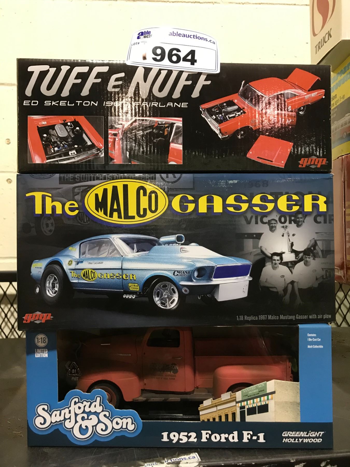 TUFF-E-NUFF 1967 ED SKELETON FAIRLANE, 1967 MALCO MUSTANG GASSER WITH AIR PLOW, SANFORD & SON 1952 FORD F-1 MODEL CARS