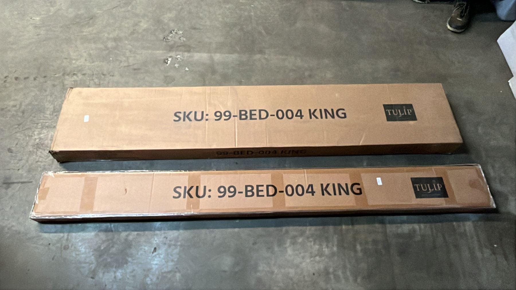 TULIP 99-BED-004-KING BED FRAME WITH 99-BED-004-KING SLATS *2 BOXES TOTAL*