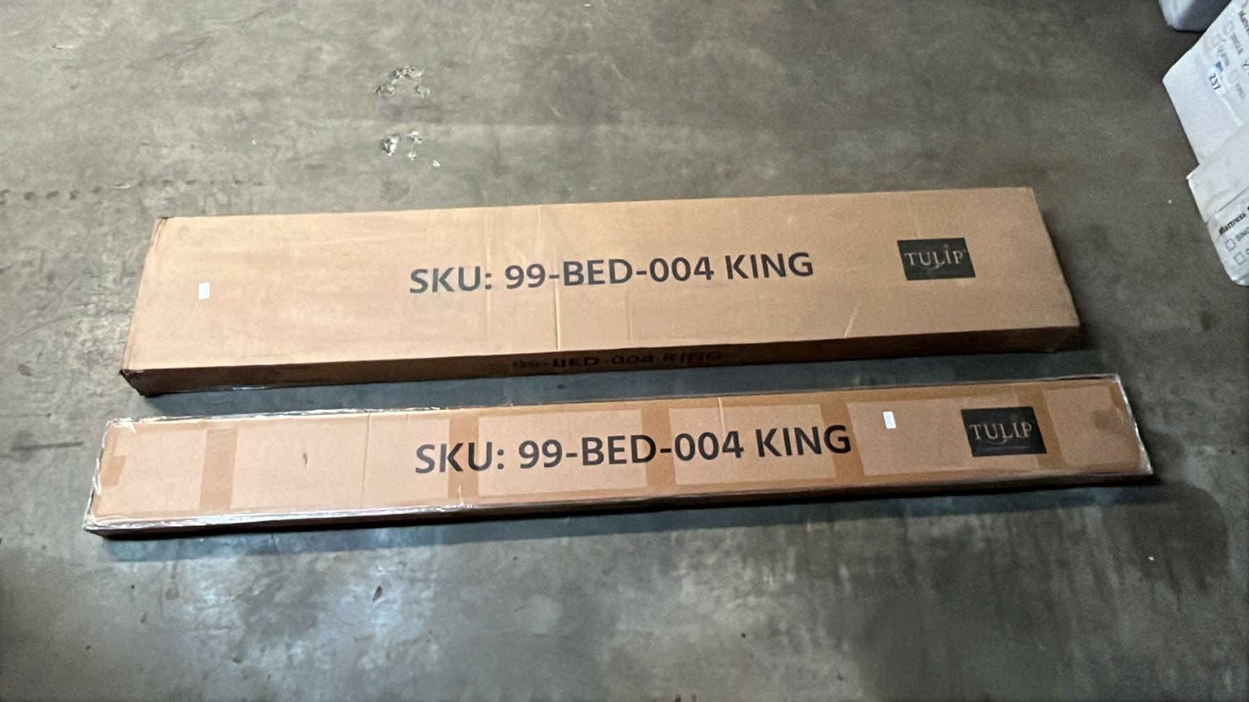 TULIP 99-BED-004-KING BED FRAME WITH 99-BED-004-KING SLATS *2 BOXES TOTAL*