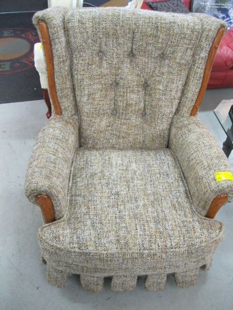 TWEED PATTERNED SWIVEL CHAIR WITH WOOD ACCENTS