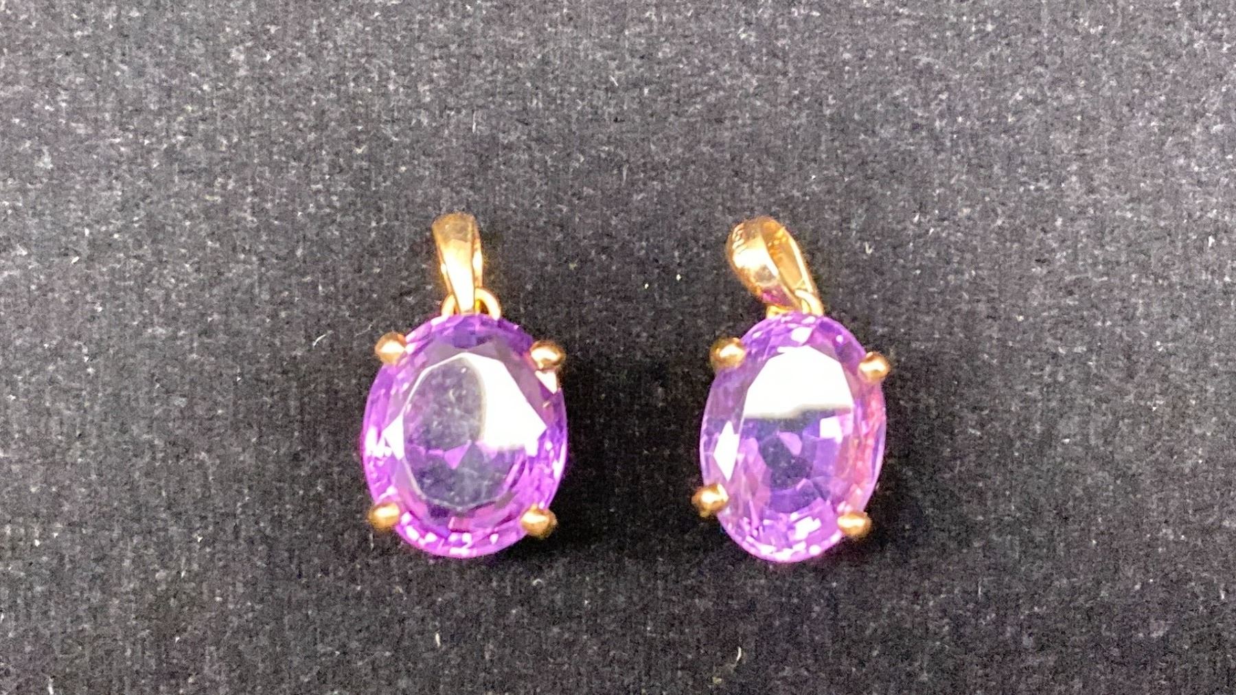 TWO 14K PENDANTS SET WITH AMETHYSTS (5.3G)