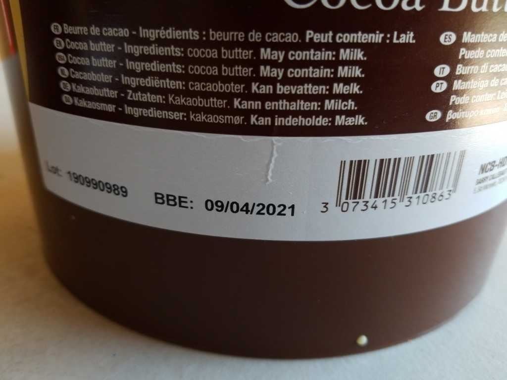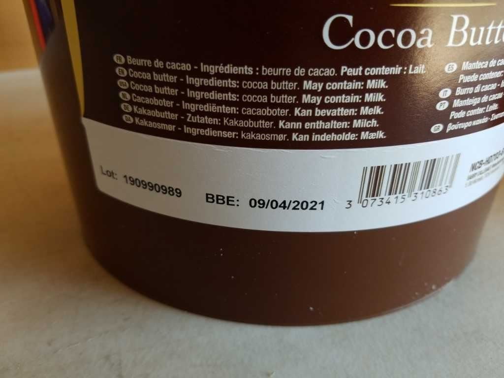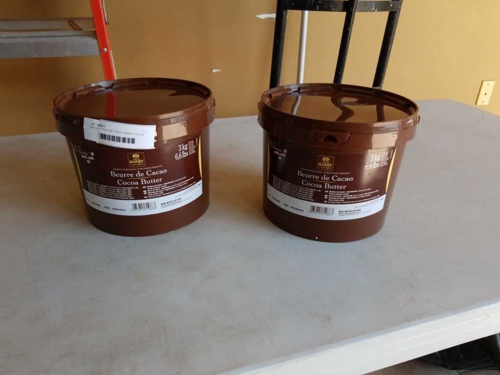 TWO 3KG PAILS OF CACAO BARRY COCOA BUTTER PISTOLES