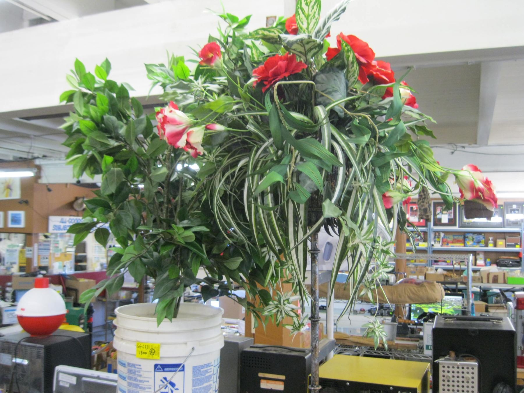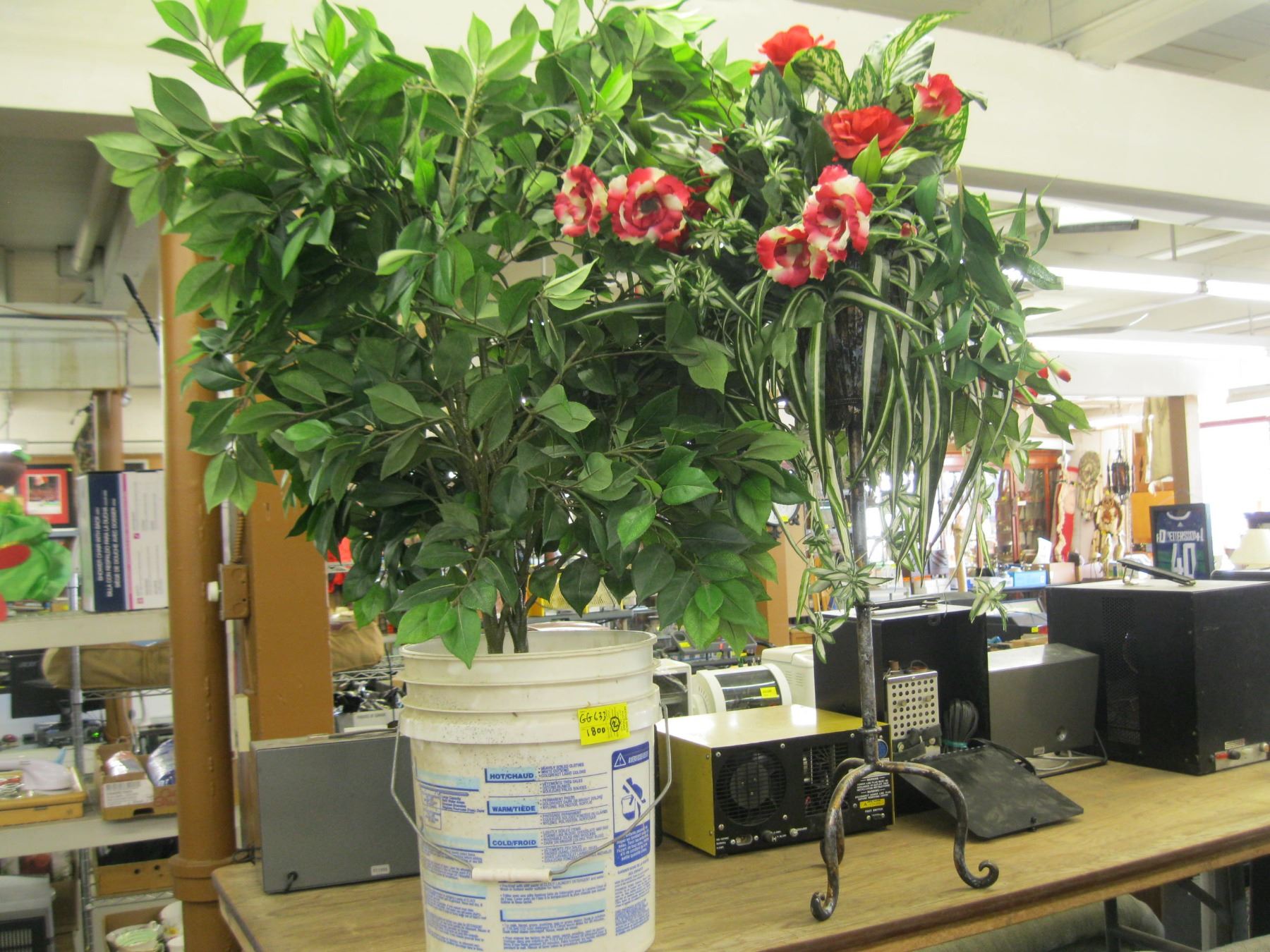 TWO ARTIFICIAL PLANTS ONE WITH METAL STAND