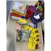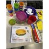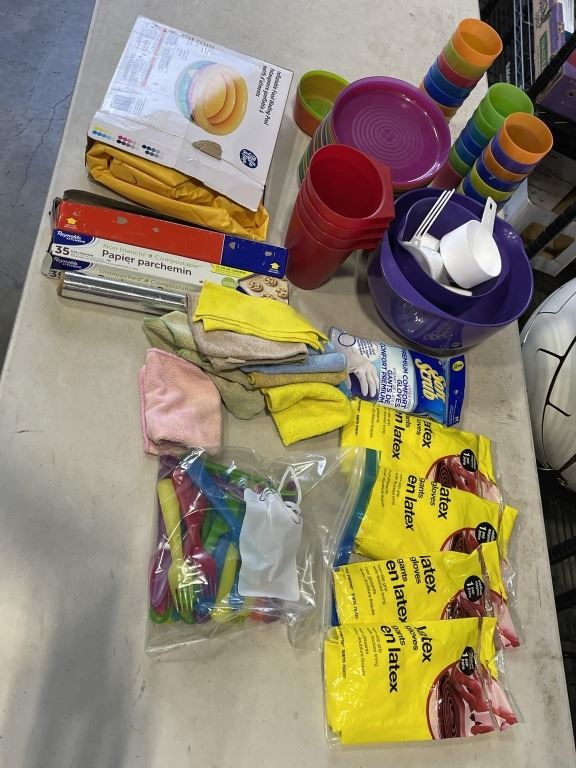 TWO BOXES OF CHILDREN'S REUSABLE CUTLERY, BOWLS, PLATES, MICROFIBER CLOTHS AND MORE