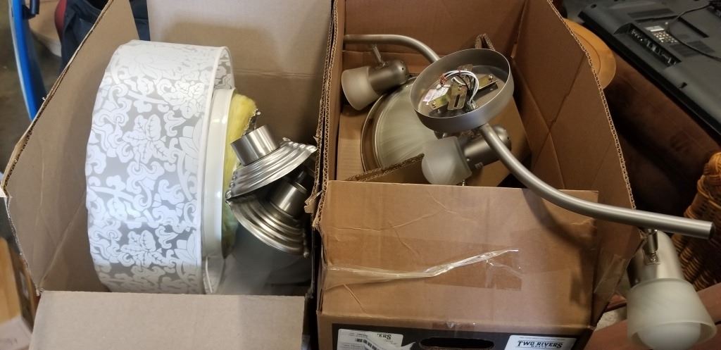 TWO BOXES WITH LIGHT FIXTRES, FOUR MARCHING FLUSH MOUNT AND BEDROOM LIGHTS