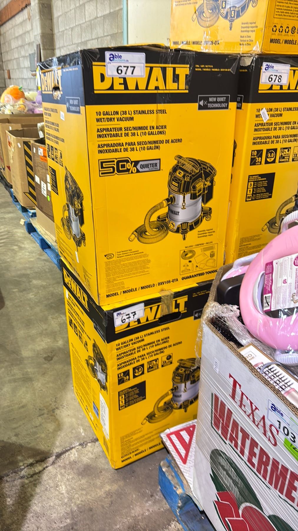 TWO DEWALT 10 GALLON STAINLESS STEEL WET/DRY VACUUMS *WORKING CONDITION UNKNOWN/MAY BE MISSING PARTS AND/OR PIECES*
