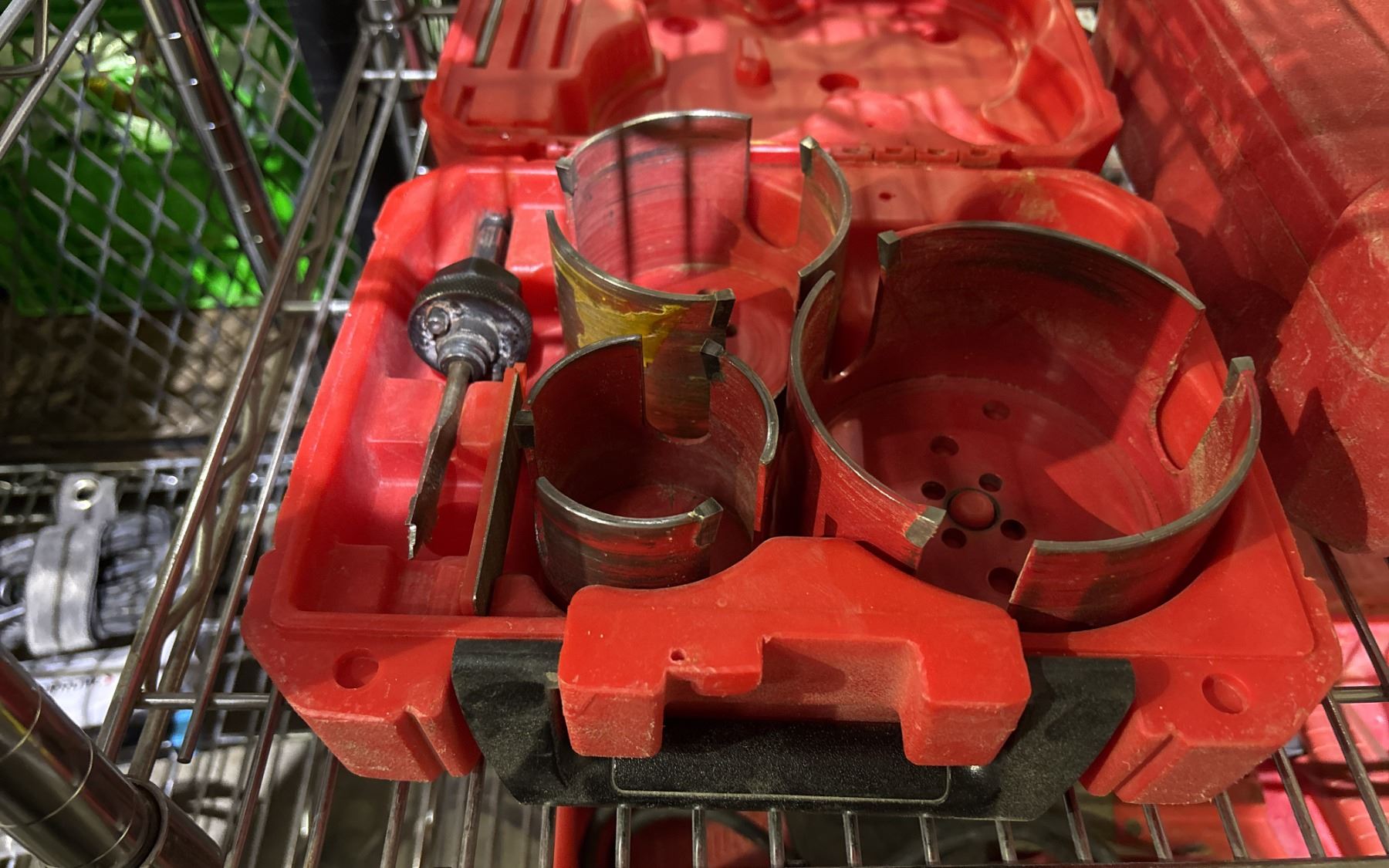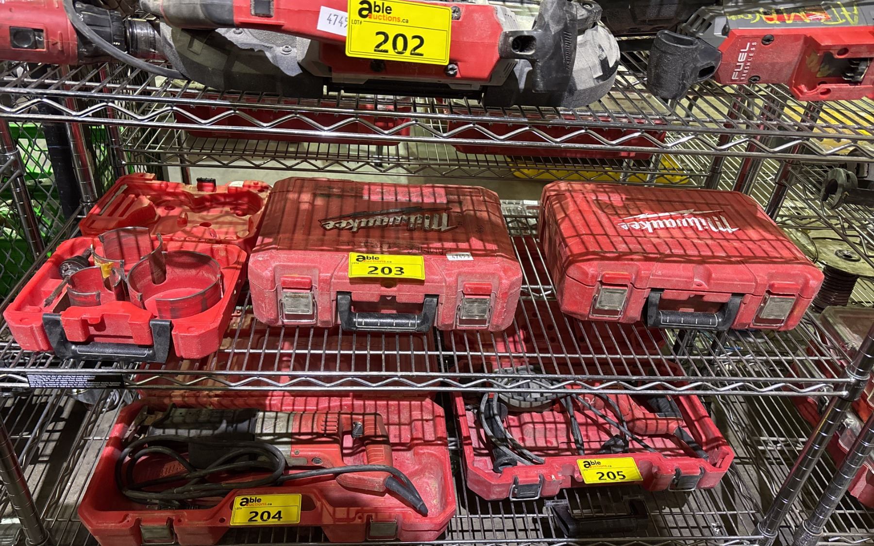 TWO MILWAUKEE ELECTRIC ROTARY HAMMERS IN HARD TRANSPORT CASES & A MILWAUKEE CARBIDE HOLE SAW KIT IN A HARD TRANSPORT CASE