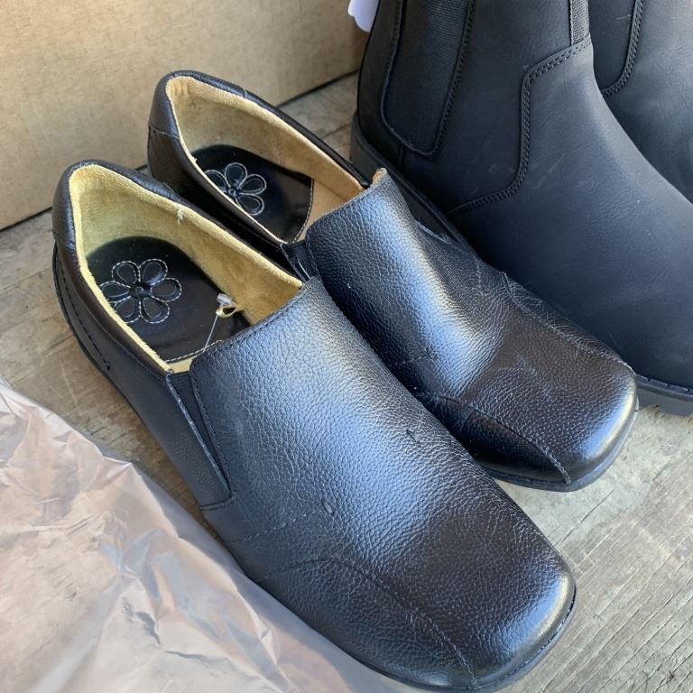 TWO NEW PAIRS OF SIZE 11 GEORGE MEMORY FOAM SLIP-ON BOOTS AND DR SCHOLL'S COMFORT SHOES RETAIL $120+