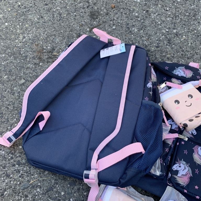 TWO NEW UNICORN BACKPACKS AND FOUR NEW EXTENDABLE PENCIL CASES