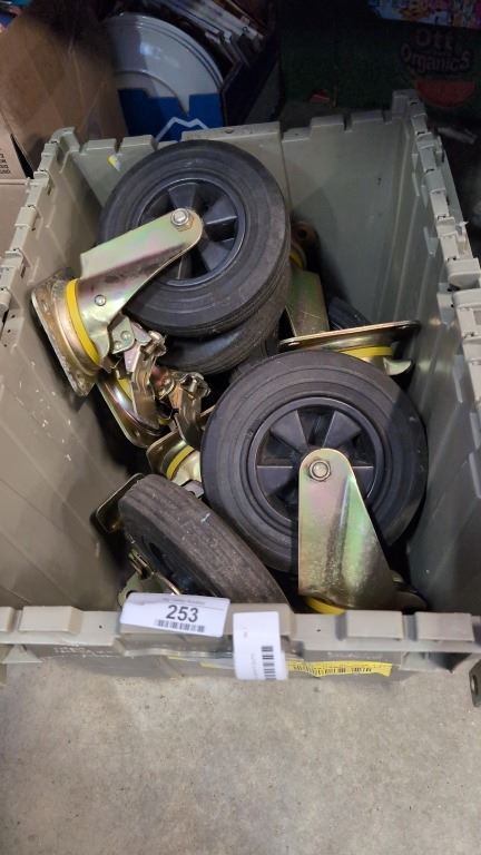 TWO SETS OF 8 INCH HEAVY DUTY CASTORS, 4 WITH BRAKE, 4 WITHOUT