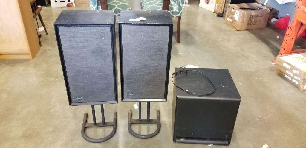 TWO VINTAGE ALTEC LANSING TOWER SPEAKERS AND ACOUSTIC RESEARCH SUB