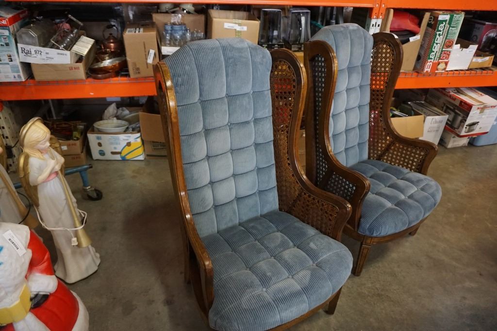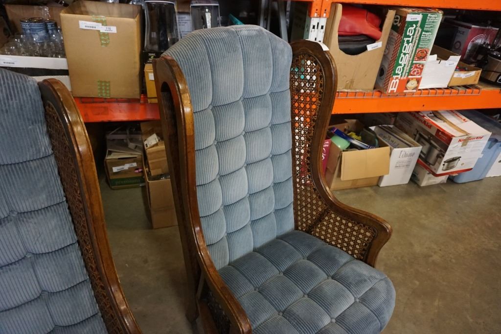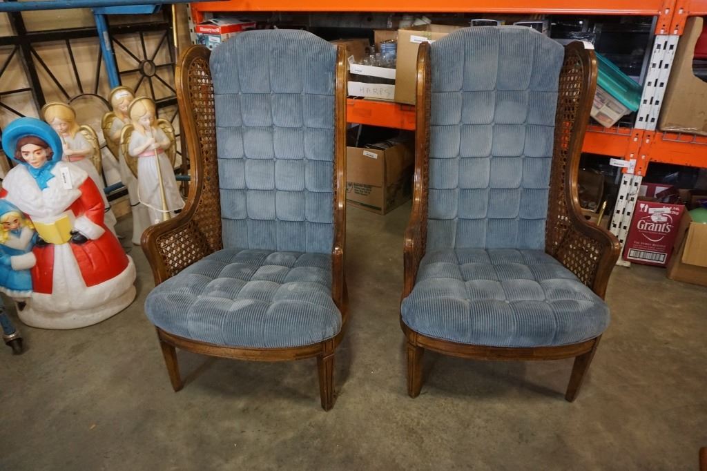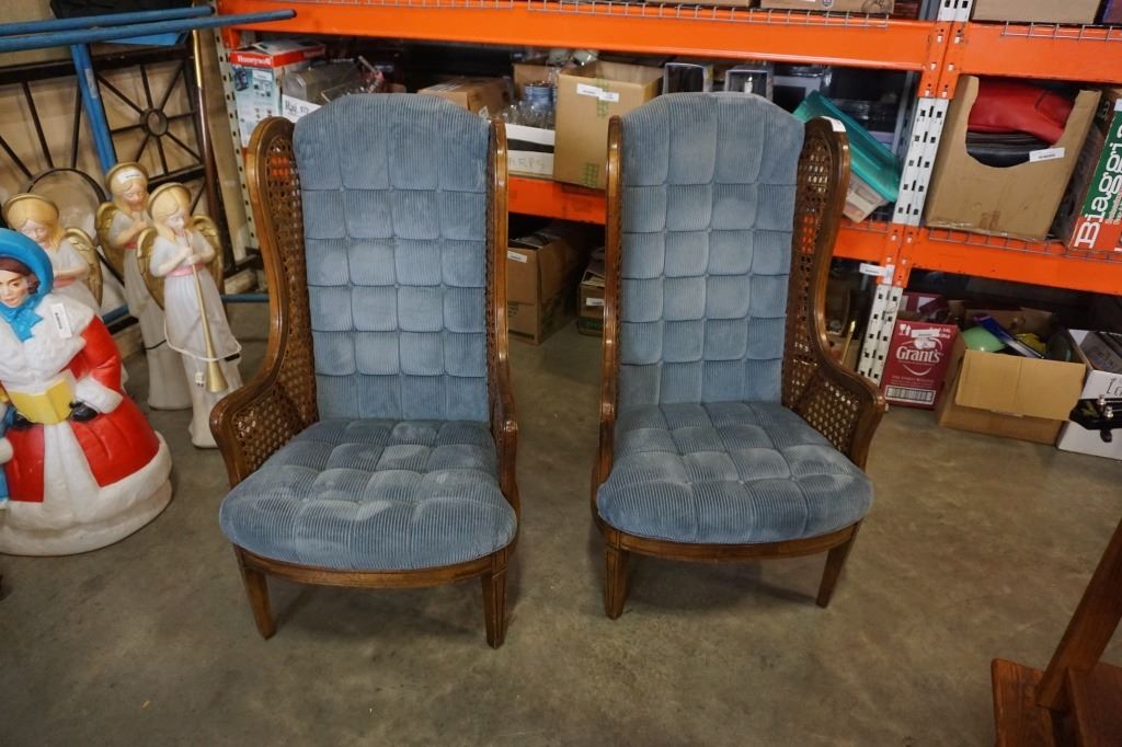 TWO WOOD FRAMED WINGBACK CHAIRS
