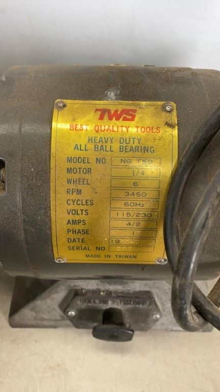 TWS 1/4 HP 6" BENCH GRINDER AND BUFFER WITH PLEXI GUARD WORKING