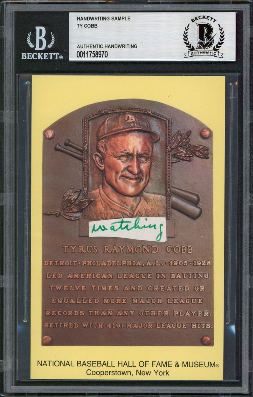 TY COBB AUTHENTIC HANDWRITING (BECKETT ENCAPSULATED)