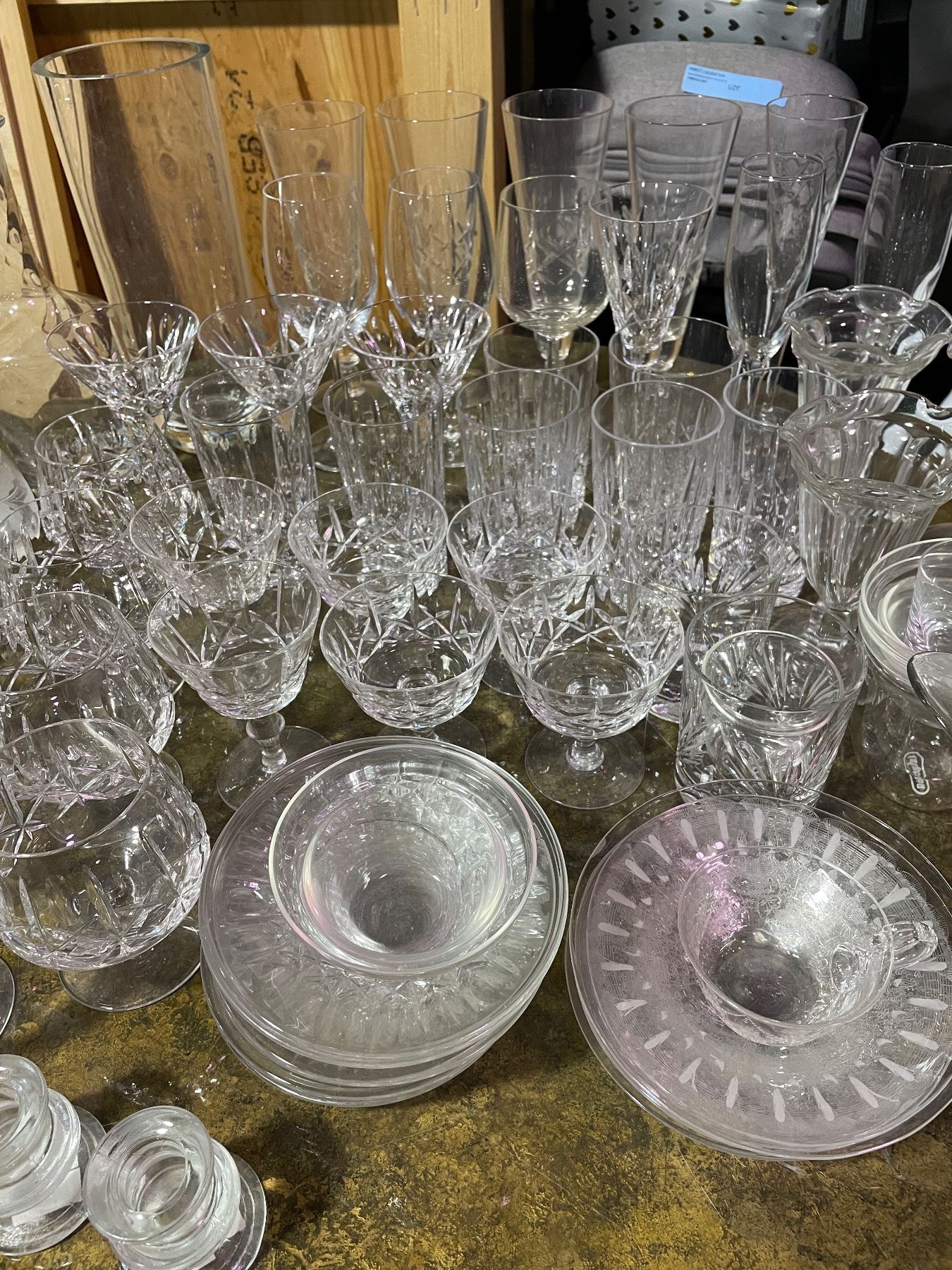 Table Top of Misc Glassware - Cups, Plates, Glasses, Etc.
